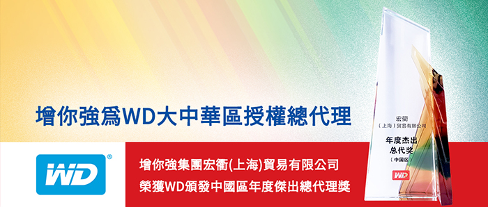 增你強為硬盤大廠WD大中華區重要合作伙伴,并屢獲WD的肯定,2019年度獲頒卓越合作伙伴獎,2020年度榮獲WD頒發中國區杰出總代理獎。