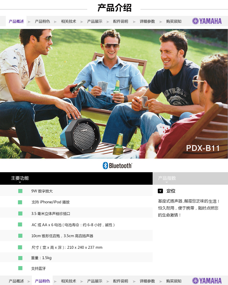- Yamaha/雅馬哈 PDX-B11 藍牙 便攜戶外 電腦 蘋果安卓迷你音響