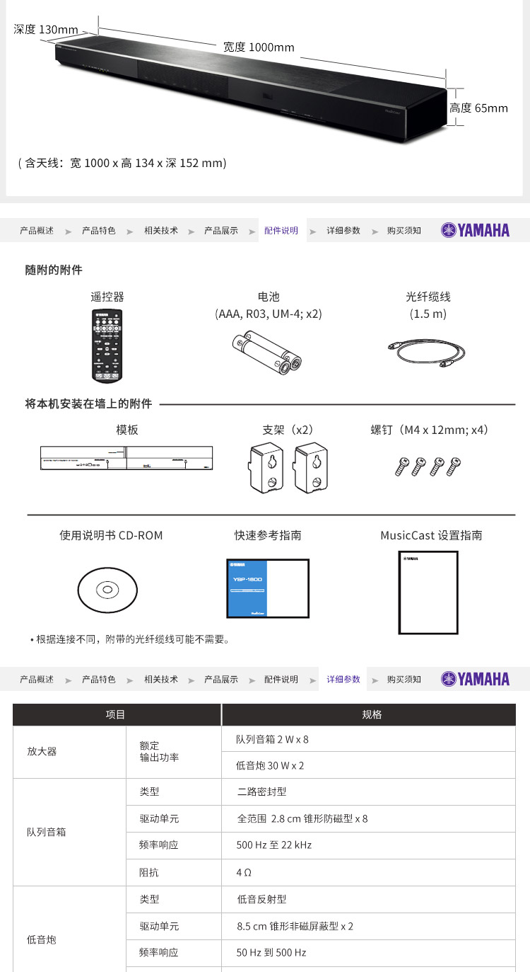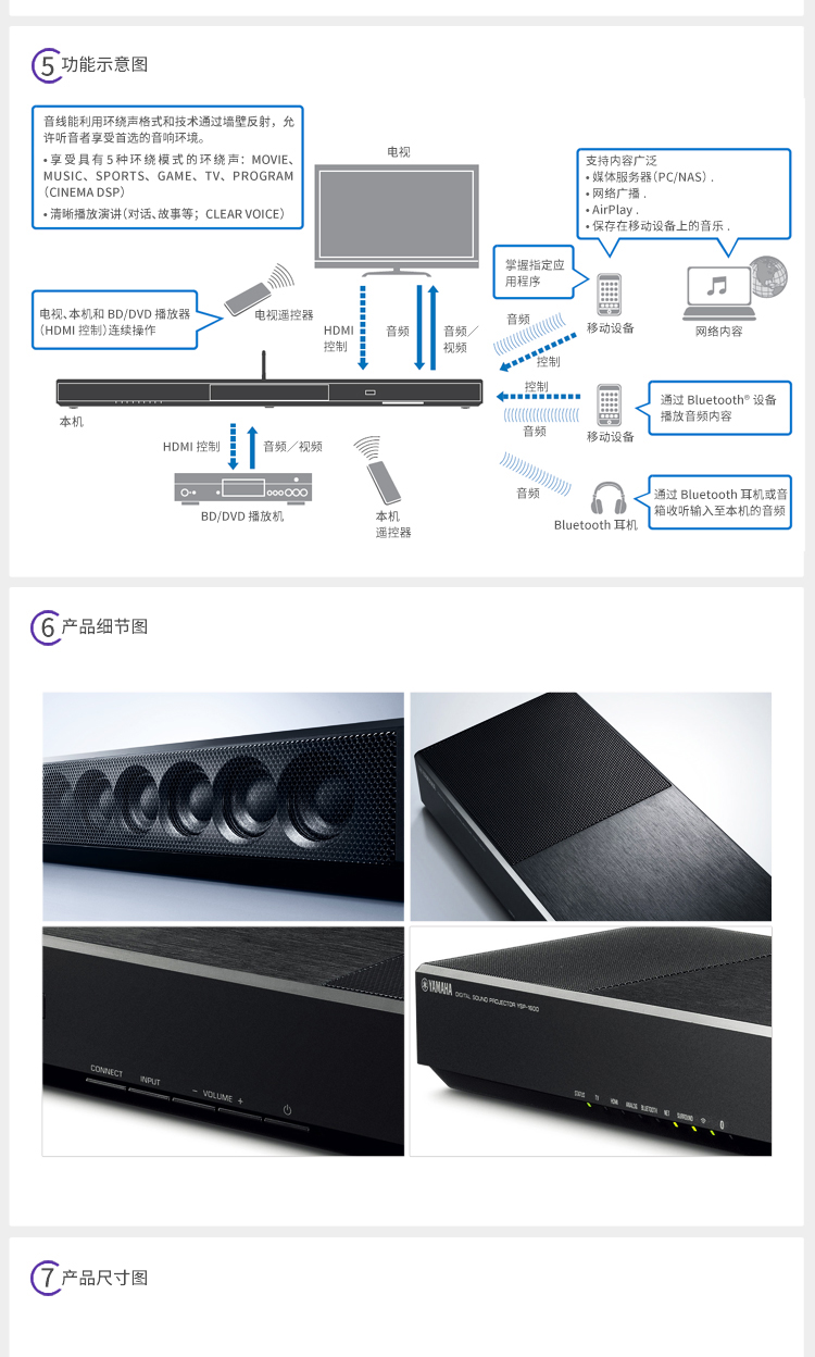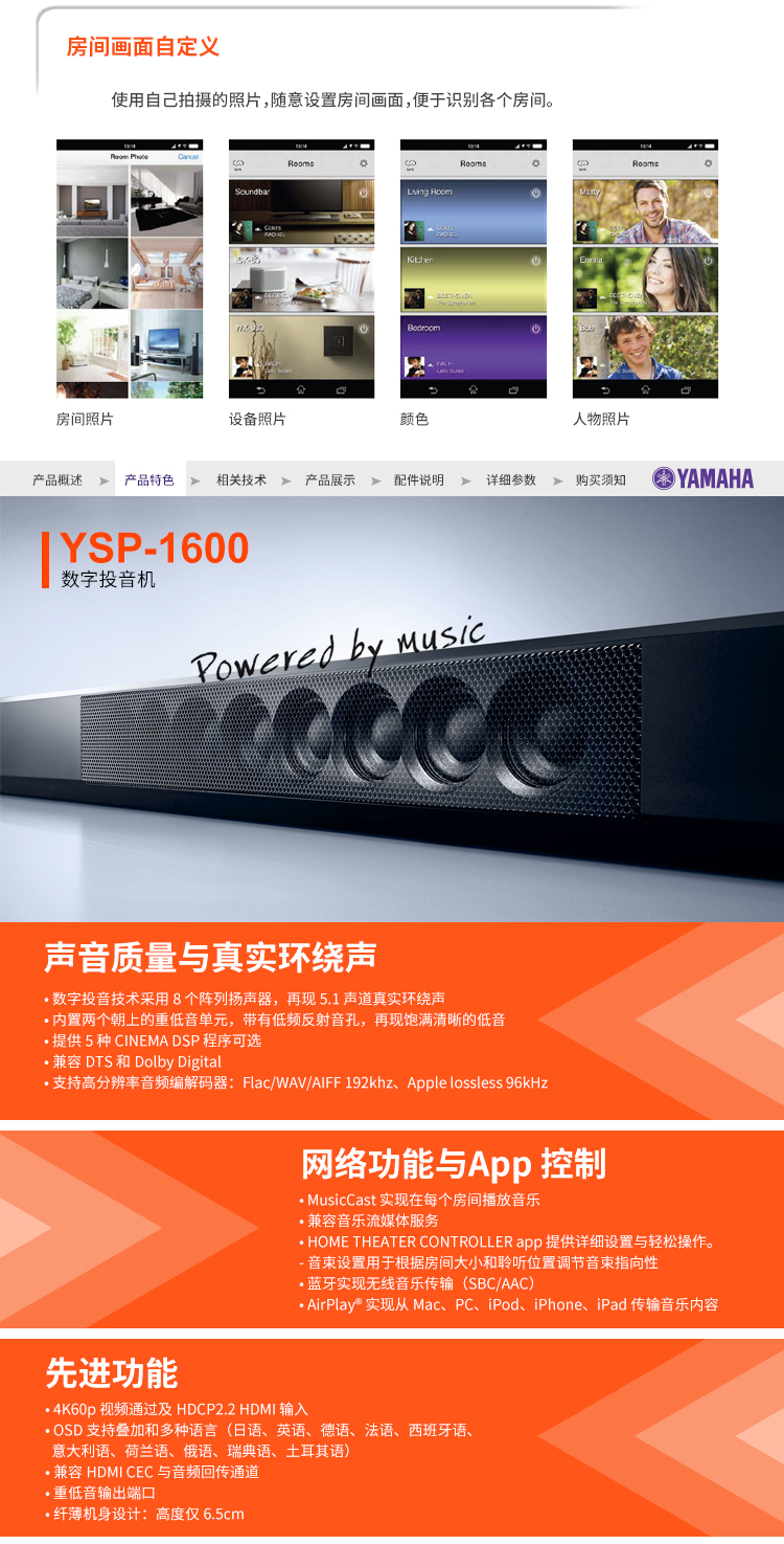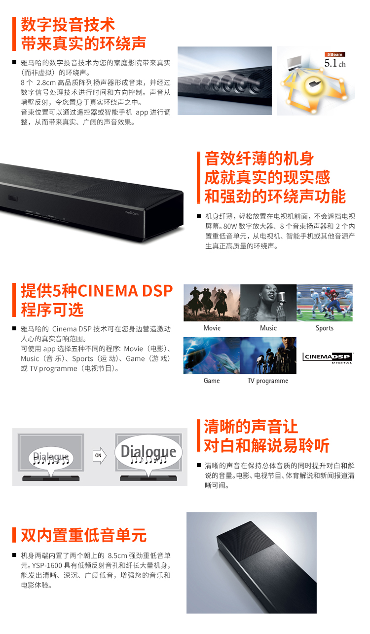 - Yamaha/雅馬哈 YSP-1600 5.1聲道 無線藍(lán)牙數(shù)字投音機