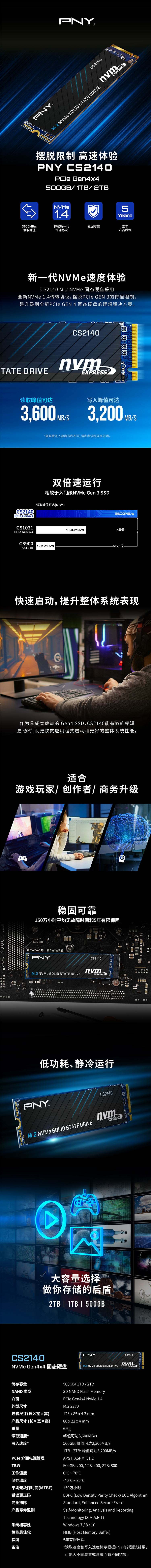 - CS2140 M.2 2280 NVMe Gen4x4 固態硬盤
